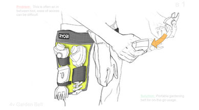 Identified useful light duty outdoor tools that would complement Ryobi’s high-power equipment. Using consumer insights, we developed visual storyboards to capture when, where, and why these tools would be used, establishing rationale and early functional benefit.